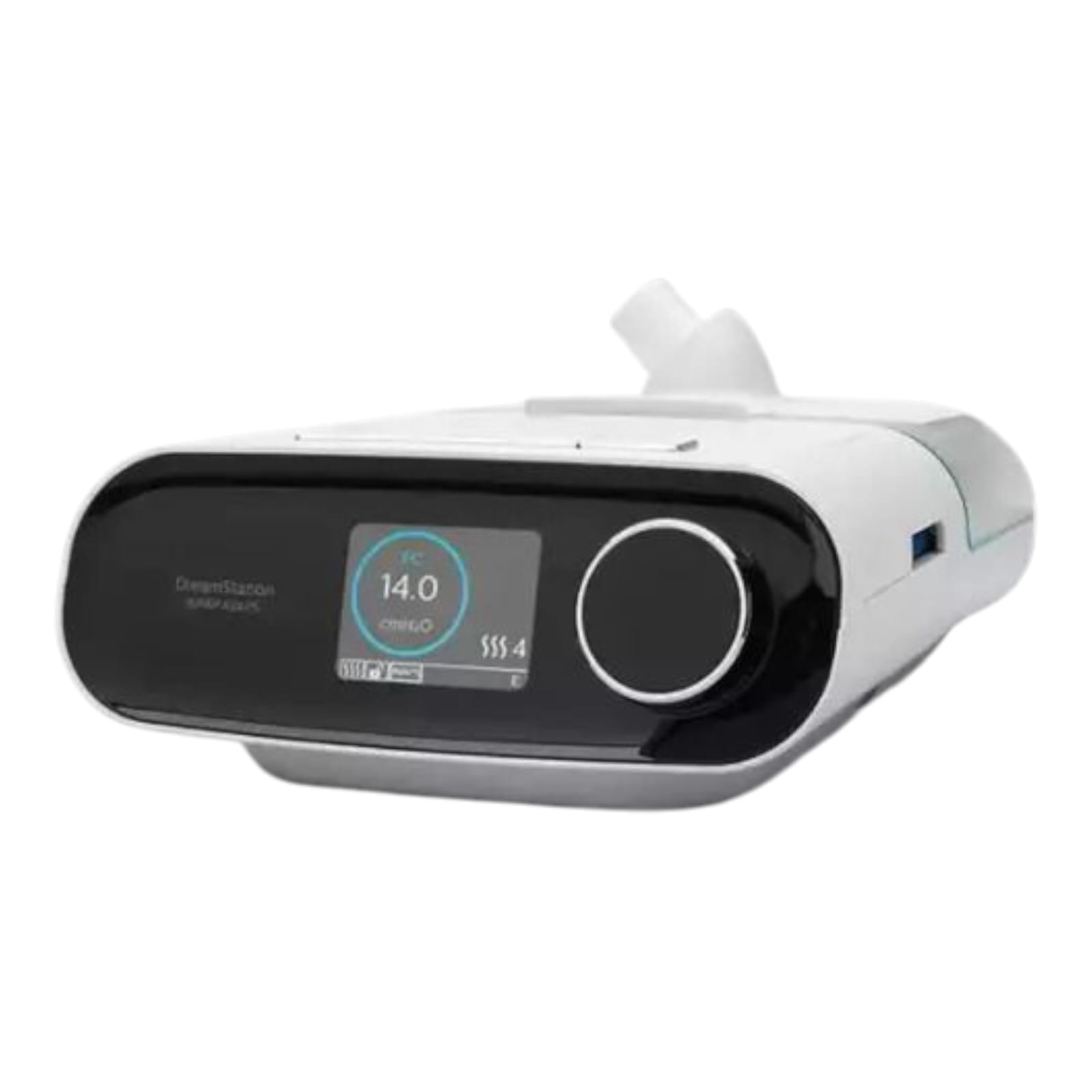 What’s in the box? BiPAP device, heated humidifier chamber, power adapter.